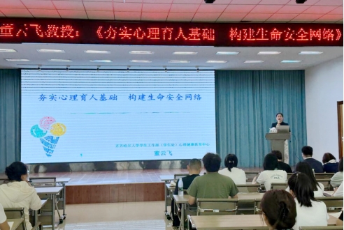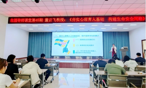 董云飞以《夯实心理育人基础 构建生命安全网络》为题进行专题培训。董云飞结合丰富的实践经验,深入浅出地讲解了高校心理健康教育的重要性,并通过案例分析、情景再现等方式,让教师们深刻认识到心理健康教育在学生全面发展中的重要作用。提出教师要体悟、洞察、把握学生心理,发挥自身特长,善于沟通交流,通过科学的方法挖掘学生积极向上的心理品质,做学生心灵的抚慰者。讲座内容丰富,现场气氛活跃,得到了教师们的一致好评。