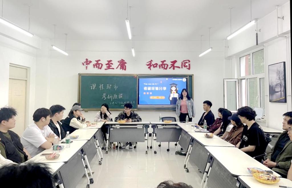 5月31日,土木202班杜洋同学为参加课程超市的学弟学妹们分享自己考取齐齐哈尔大学研究生的成功经验,杜洋结合自身学习心得,从考研资料的选择、学习方法的优化、心态调整的技巧三方面进行介绍。并与学弟学妹就行现场交流,回答提问。杜洋表示,在考研备考的道路上,只有坚定信念就一定会战胜困难,取得好成绩。