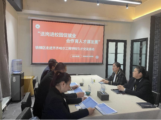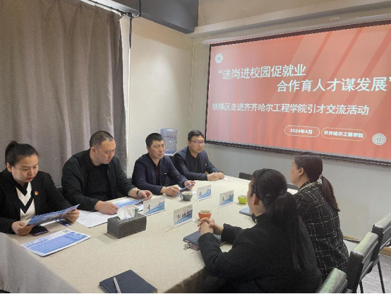 为进一步发挥政府引领、企业引人才、高校促就业的作用,深化地方、企业、高校在人才、科技、创新等领域合作,全力构建政校企三方优势互补、人才共育、合作共赢的发展格局。4月26日,齐齐哈尔市铁锋区委组织部常务副部长徐升带领区人才办一行四人来校开展引才交流座谈会,学生发展中心负责人康静及教师郭明敬参加座谈。