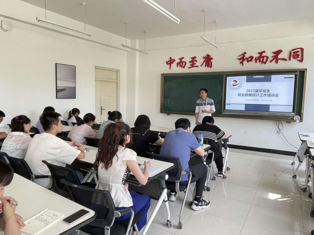 徐立志老师为参会人员解读《黑龙江省教育厅关于做好2023届全省普通高校毕业生就业创业工作的通知》。省教育厅对我校在2022届毕业生的毕业去向落实率以及就业存疑率两项指标取得的优异成绩给予了肯定和鼓励。