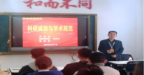 毕业后流动站(就业缓冲区),邀请校科研处宋庆永老师为流动站成员们开展《科研诚信与学术规范》讲座。2023级研修生18人参加此次讲座。