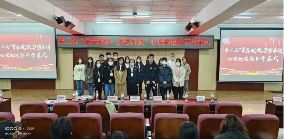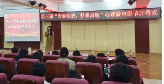 近日,大学生心理发展协会在图书馆501举办了第三届“青春绽放·梦想启航”心理微电影节开幕式。学生发展中心教师彭欢欢、张辑娜、张贺及300余名学生参加。