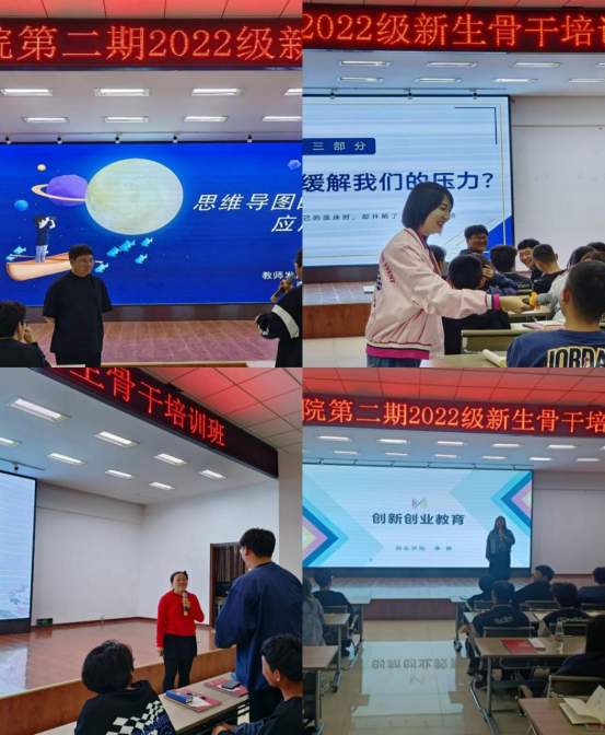 辅导员蔡爽老师在《如何当好一名学生干部》讲座中提到作为学生要养成良好的学习习惯,对学生干部应具有的综合素质,就如何开展班级工作在四个方面提出了具体建议。教师发展中心副主任李文禹介绍了思维导图工具使用方法。团委书记郭明敬讲解《齐齐哈尔工程学院学生德育学分管理办法》《学生违纪处分实施细则》等制度。学生工作处刘晶老师讲解了奖助贷政策及参军政策相关方面的内容,让骨干们深入了解了奖学金、助学金、助学贷款的相关政策,并鼓励在校大学生应征入伍。学生发展中心负责人康静以黑龙江省第八届“互联网+”大学生创新创业大赛金奖七彩粘豆包为例,为学员深入讲解创新创业教育的理念、政策和制度,并介绍了学校创业实践教育基地建设情况以及近三年创新创业活动和成果。