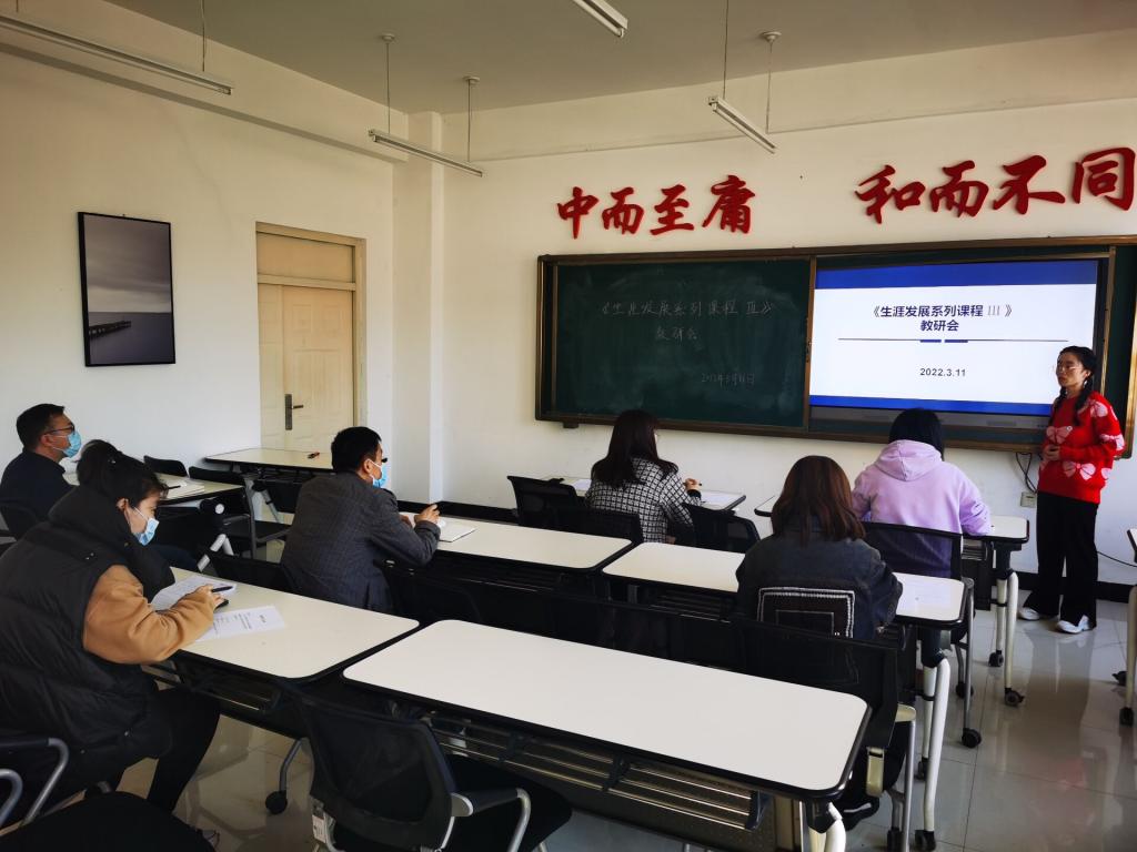 为提升教学水平,高质量完成《生涯发展系列课程Ⅲ》的课程任务,3月11日,学生发展中心组织2021-2022学年第二学期集体备课,8位担任主讲及助课教师参加,彭欢欢老师主持活动。