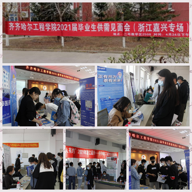 这次专场招聘活动既有浙江嘉兴28家企业,又有省内5家企业参与。“地方发展需要人才,企业发展依靠人才”,当了解学校有第三学期,而且有实习安排,一位负责企业招聘的带队领导如是说。笔者了解到,各个企业在当天上午就已经将展位需用的信息海报悬挂完毕,教学区路两侧悬挂“齐齐哈尔工程学院2021届毕业生供需见面会(浙江嘉兴专场)”横幅,亮眼醒目。