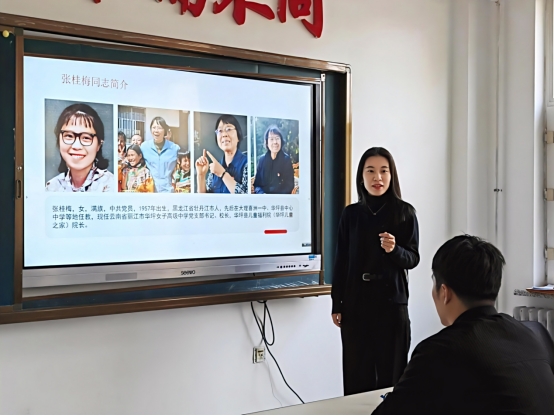 学生发展中心教师乔丹带领参会人员学习《向张桂梅学习:师德师风的光辉典范》典型事迹。张桂梅,这个名字犹如一盏明灯,照亮了无数山区女孩前行的道路。坚守在教育的最前线,在偏远的山区,用自己的一生诠释着什么是真正的师德师风。