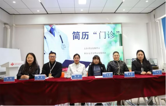 4月2日学生发展中心在二号教学区2102教室开展简历“门诊”活动,本次活动邀请学生发展中心康静、牛轶慧、郭明敬、张贺、何龙、艾涵塽六位就业指导专家给大三学生进行简历诊断。