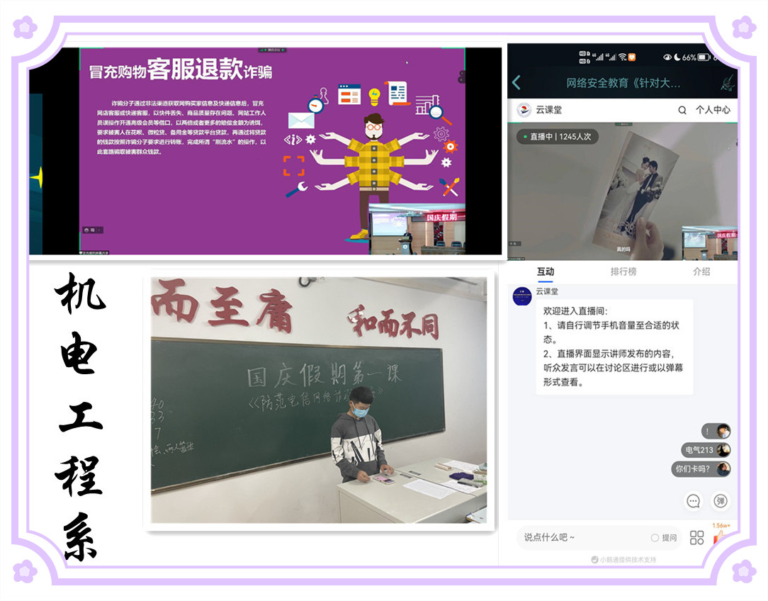 为了加强校园安全,提高学生的安全意识,预防校园网络诈骗,努力营造积极向上、健康和谐的校园环境。10月6日,学生发展中心在图书馆601举办“防网络诈骗”教育活动讲座。线下46名学生代表现场聆听讲座,其余2021级学生在线上观看讲座直播。