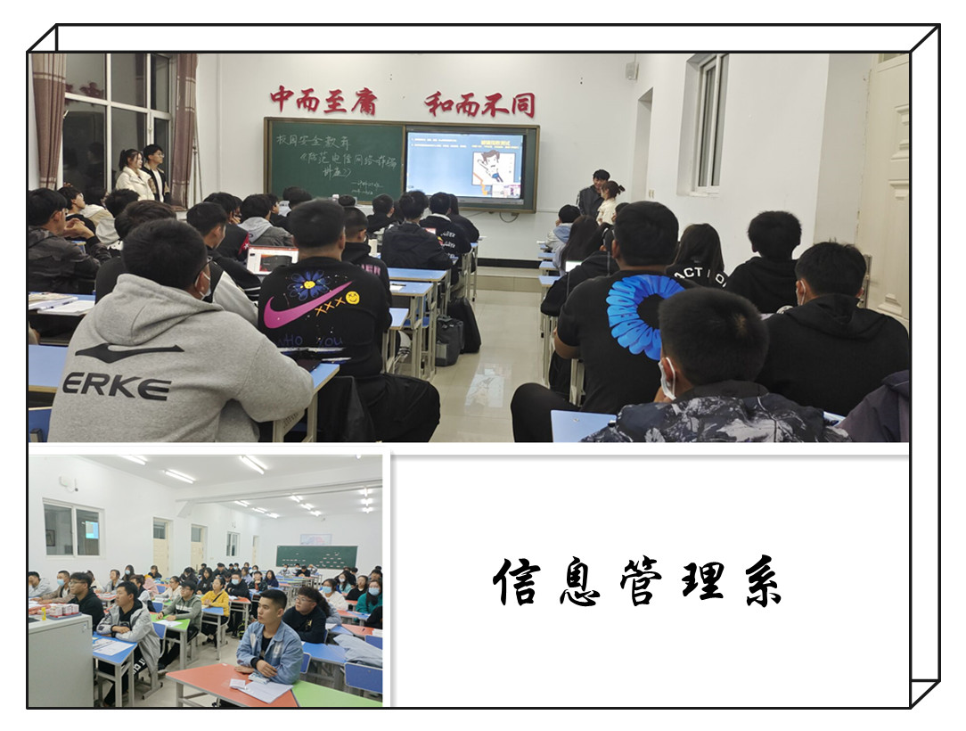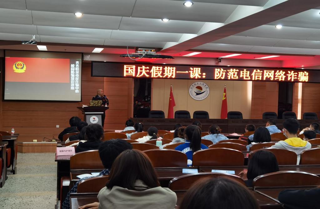 此次活动,邀请齐齐哈尔市反诈骗中心徐宗浩警官做“校园反诈骗”知识宣讲。徐警官围绕“网络电信诈骗”的形式,为广大师生详细地介绍了电信诈骗的概念、新型电信网络诈骗的主要类型、大学生防范电信网络诈骗的措施以及提高警惕谨防校园网贷陷阱等内容,着重介绍了网络刷单、套路贷、网络中奖等大量电信诈骗的典型案例。