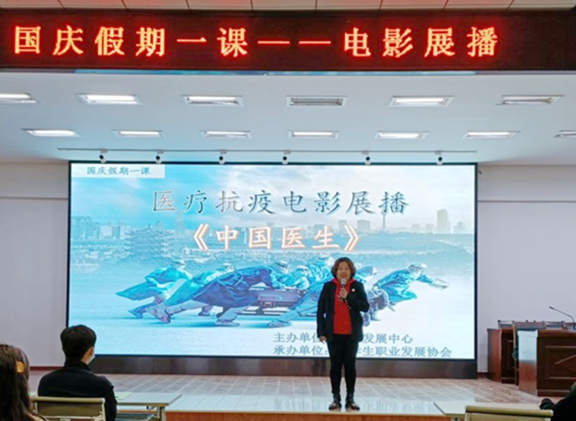 为全面贯彻落实黑龙江省教育厅应对新型冠状病毒感染肺炎疫情工作领导小组指挥部《关于高度重视国庆假期疫情防控及上好“国庆假期一课”的通知》精神,自10月4日起,学生发展中心每晚18:00,在二号教学区2508教室,开展“医疗抗疫类”电影《中国医生》的展播活动。为做好校园疫情防控工作,学生用手机小程序扫码报名,每场展播活动限定观看人数50人。电影开播前,学生发展中心牛轶慧老师都为学生简要介绍了剧情,影片《中国医生》根据武汉新冠肺炎疫情防控斗争的真实事件改编,全景式记录了这段艰苦卓绝的抗疫过程。同学们被片中感人事迹震撼,当看到救援医生,由于长时间连续工作,汗水浸透了衣服,脸颊被口罩磨破,依然坚持在抗疫一线,志愿者们无私奉献,万众一心支援抗疫时,同学们不禁潸然泪下。观影结束后,同学们纷纷表示,要珍惜现在的幸福时光,遵守学校新冠肺炎疫情防控要求,自觉增强疫情防控意识,积极配合学校,为防疫工作做贡献。