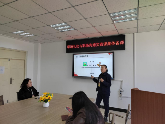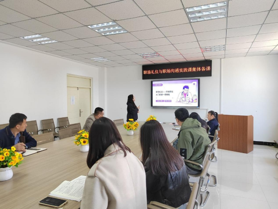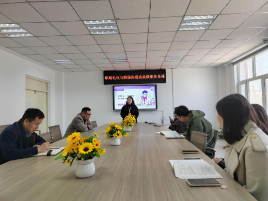 张贺、郭明敬分别从职场礼仪和职场沟通两个方面分享课程实施过程中教学案例环节设计以及自己在教学中遇到的难点和解决方法,让大家受益匪浅。随即与会教师进行研讨。