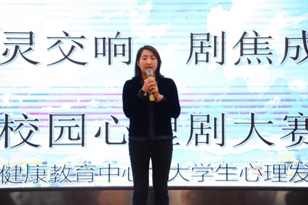 陈景鑫为活动致辞,肯定了心理健康教育中心开展“5·25”大学生心理健康月系列活动所做的工作,同时也预祝本次心理剧大赛的选手们取得佳绩。
