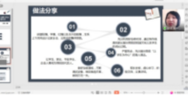 建筑工程系辅导员蔡爽分享了她在育人工作中收获和感悟,介绍了依据校情、学情、社情,设计不同年级学生云家长会的思路,通过家长会充分了解到学生的基本情况、掌握学生和家长的需求,征求学生和家长的建议和想法,并连线成功企业家为学生介绍企业用人标准等,获得学生和家长的一致好评。