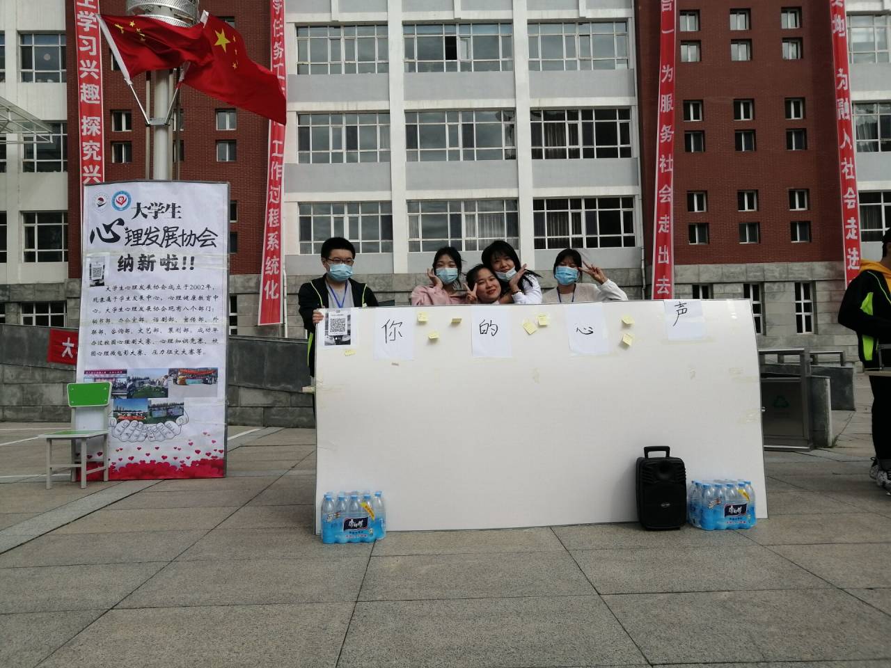 金秋季节,新生入学,大学于他们而言是一个完全陌生的环境,为使其更快融入新环境,感受到大学校园的热情。大学生心理发展协会和大学生流行音乐协会特地于2020年10月03日--04日10:00--17:00在明德广场开展“你的心声”活动。
