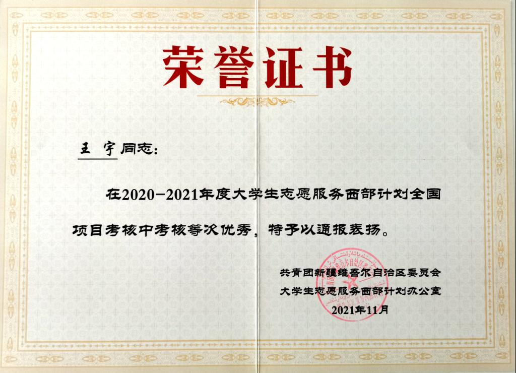 服务期间,他时常提及并感谢自己的母校。在校四年的学习中,他不仅专业基础扎实,志愿服务也是从未落下。这为他更好地开展基层服务工作奠定了基础。因为语言不通是工作开展的最大障碍,他自创了一套沟通方法,了解群众所想所需,帮助群众解决生活中的实际困难。在一次入户走访中,一位阿姨因社保系统问题一直交不上社保款,这使得她很焦急。在得知情况后,王宇一边安抚阿姨,一边联系相关部门,积极去解决问题。他说:“作为一名基层工作者,应具备为群众服务的思想觉悟,群众的事都是大事,自己的事都是小事。”
