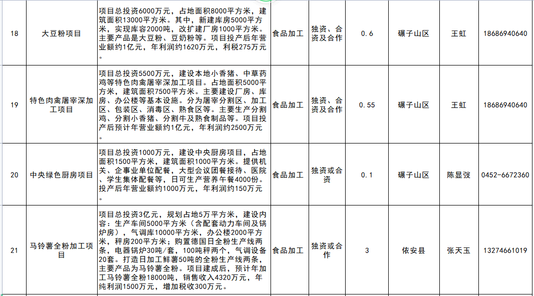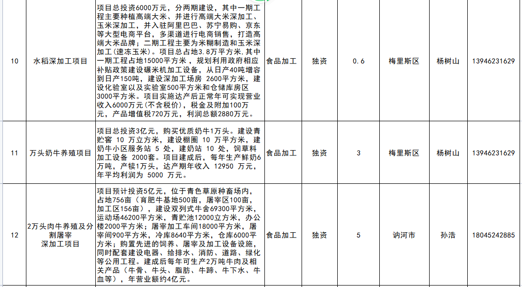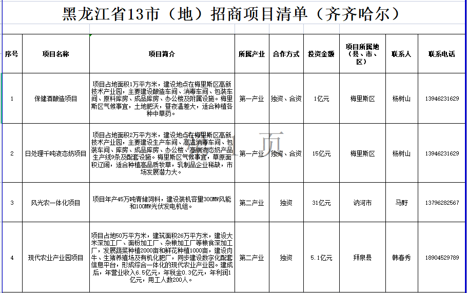 黑龙江省13市(地)招商项目清单(齐齐哈尔)