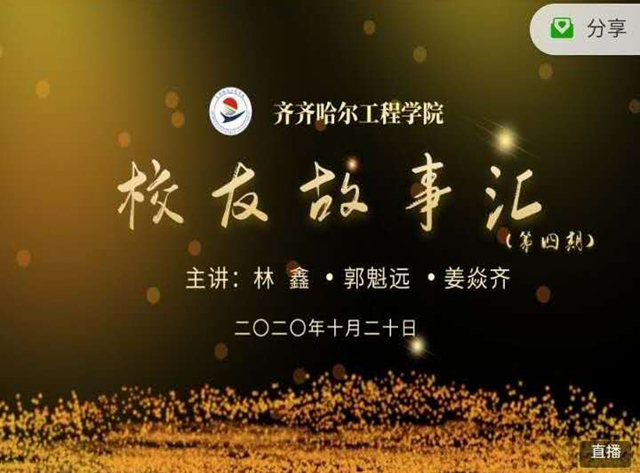 2020级新生军训生活刚刚结束,新学期课程开启。10月20日,学校举办第四期“校友故事汇”活动,全体2020级新生在教室通过直播平台观看,其他校友、在校生和社会各界人士3000多人在线参加活动。