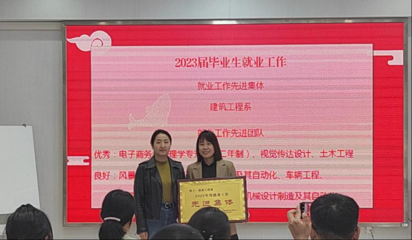 会议首先对在2023届毕业生就业工作中表现突出的工作集体和工作团队进行表彰。建筑工程系获得就业工作先进集体奖,电子商务、护理学专升本(二年制)、视觉传达设计、土木工程风景园林、工程管理、电气工程及其自动化、车辆工程、电子科学与技术、汽车服务工程、机械设计制造及其自动化专业获就业工作先进团队奖。