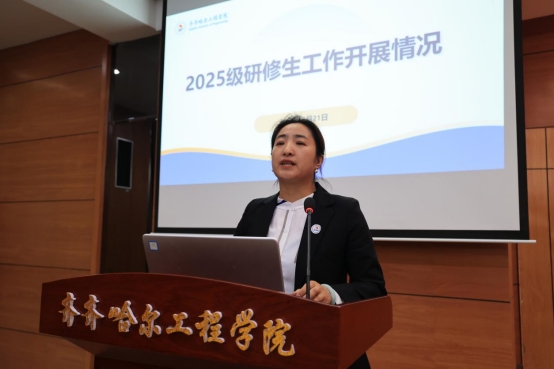 仪式伊始,陈景鑫介绍学校 2025 级研修生工作开展情况。指出,研修生项目严格对标国家专业硕士培养标准,针对选拔出的优秀本科毕业生进行专项培养的探索与实践。