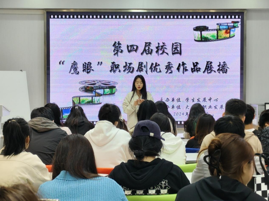 4月17日,学生发展中心分别在在2号教学区1106、2102、2103培训室举办“第四届校园‘鹰眼’职场剧”大赛初赛。大学生职业发展协会承办本次活动,全校各专业200余名学生参加。