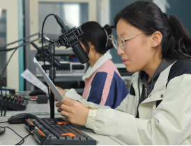 融媒体中心的同学们则充分发挥专业优势,将筛选出来的优秀作品进行播音。