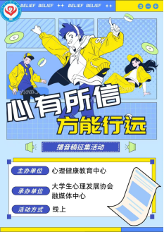 3月15日至3月29日,学生发展中心社团组织大学生心理发展协会联合学校融媒体中心,共同举办第六期“心有所信,方能远行”心之音心理健康活动。全校共二百余人参加。