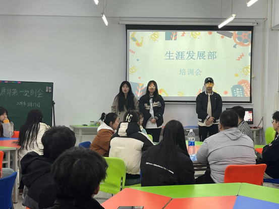 3月19日大学生职业发展协会生涯发展部在二号教学区2103教室开展新学期生涯委员培训会。部长孟欣宇、刘禹彤、方鹤璇主持会议,生涯发展部全体部员及各班生涯委员参加。学生发展中心指导教师张贺受邀参加。