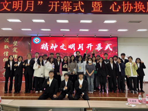 9月26日,大学生心理发展协会在二号教学区2508会议室举办“精神文明月”开幕式暨协会换届仪式。活动以“同心协力,初心前行”为主题,邀请了学生发展中心指导教师周倍娴、艾涵塽、石伟以及学生社团联合会、创业者协会等7个协会的14名干部作为嘉宾出席,全校共有150名学生参加。