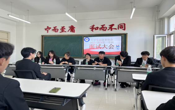 9月23日大学生创业者协会在二号教学区1106室进行换届面试,协会骨干成员和协会指导教师张贺对22名候选人进行面试。