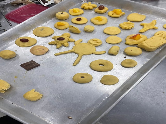 部长牟静文向各位同学详细讲解饼干的制作方法及各食品原料的加入比例,同学们纷纷跃跃欲试,一展手艺。在活动中,他们团结协作,相互帮助。各种创意图形的美食完美的呈现。