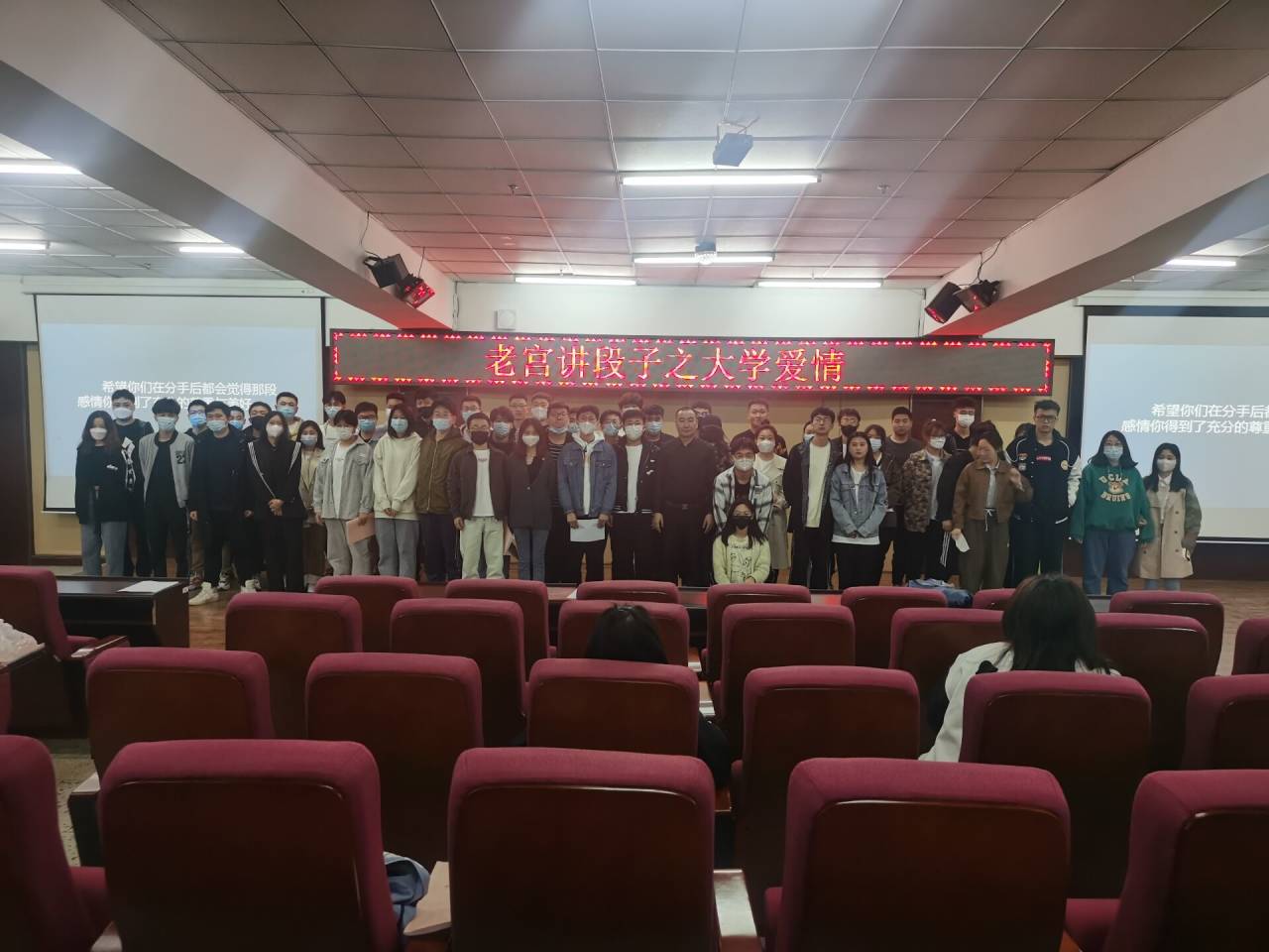 为了让大学生更好的了解爱情,树立正确的爱情观,培养大学生的责任感。大学生创业者协会于2022年4月15日在图书馆501举办“老宫讲段子之大学爱情”讲座,参加此次讲座的有主讲宫老师及齐齐哈尔工程学院部分学生。