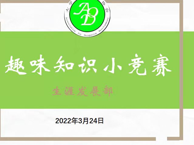 2022年3月24日18:00—19:00,为了让大家在紧张的学习氛围之余,增添一丝趣味与开心,使其在丰富趣味的竞赛氛围中增强文化意识,展现自己在知识方面的能力与才能,进一步扩大同学们的知识面,共享知识之美,大学生职业发展协会生涯发展部开展了“趣味知识”竞赛主题活动,此次活动共60余人参与。