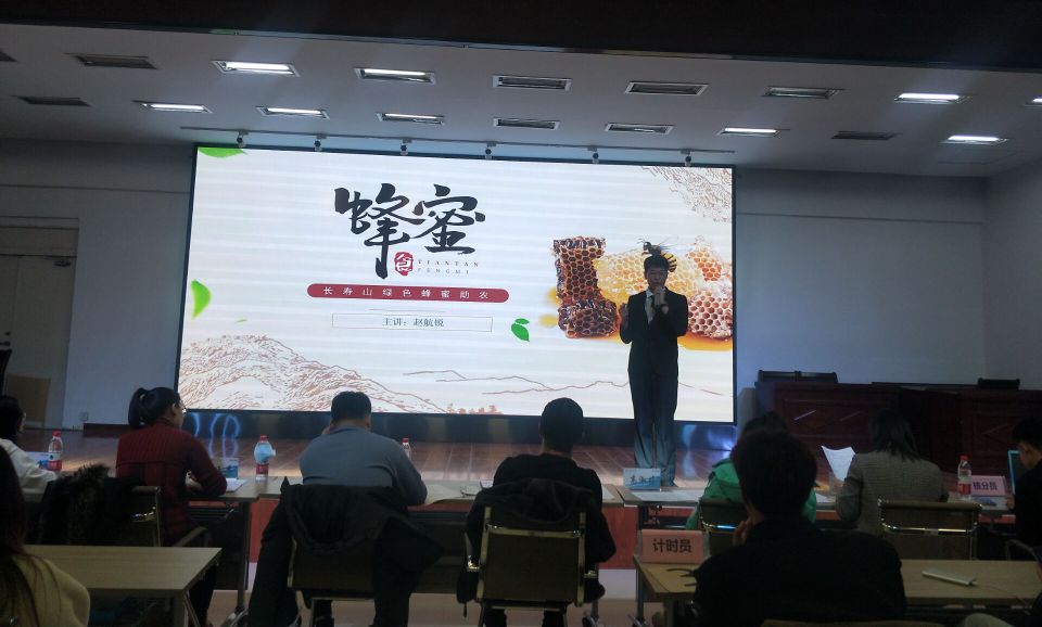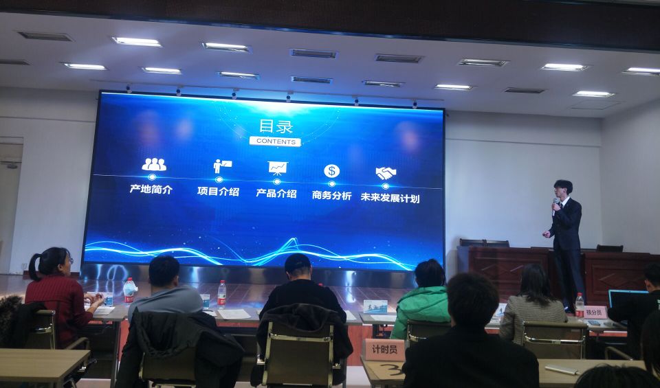 本次比赛邀请到教务处陈茂松老师,机电工程系高淑婷老师,健康与护理系相玉秀老师,科技园李广喆老师,学生发展中心李玉焕老师等7名老师担任评委。由协会干部的舞蹈串烧开场,随后参赛选手在五分钟内以PPT演讲方式进行路演,经过评委的严格评审和公开打分,最终,由学生发展中心李玉焕老师宣布晋级名单,老师说:有比赛就有名次,结果重要也不重要,这个比赛只是一个小插曲,晋级选手戒躁戒躁,没晋级总结经验从新出发,复活赛期待没能晋级的同学再次参加,希望那时还能见到你们的身影,晋级的小组分别是《中药奶茶-天天健茶》、《长寿山绿色蜂蜜助农》、《壹尚装修有限责任公司》、《vt动漫留影体验馆》、《花间词国潮文创》。