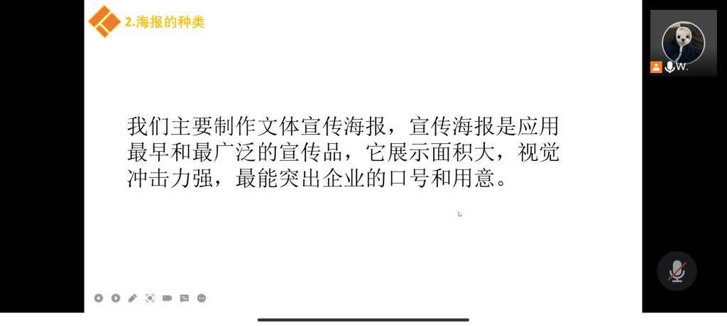 会议伊始,主讲人赵松涛介绍此次“一期一会”活动主题为海报培训并分别按照什么是海报、海报的种类等方面对海报进行详细的讲解说明;随后仔细的讲解如何简单的制作海报,并留下作业;最后,执行部长王铭伟开展例会,对上个月出现的问题进行分析并提出下个月即将开展的活动与各部门分工情况。
