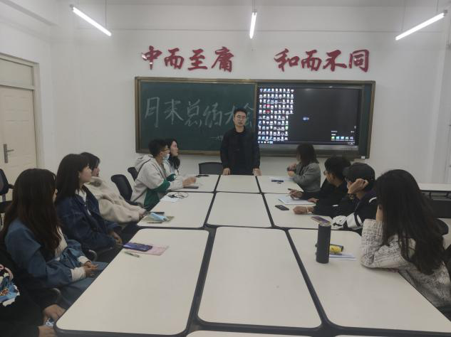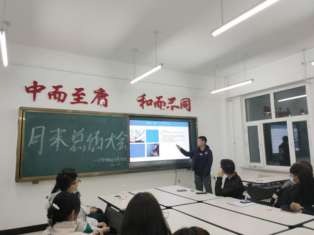 会议开始是由协会六个部门和两位执行会长对本月部门的工作进行总结并对下月工作作出规划。汇报人通过现场演示PPT,把工作中存在的问题与日后需要多加改善的地方都予以展示,而后,协会内部成员针对汇报人所陈述的内容进行补充并提出优化的建议,使各部之间取长补短、相互学习。会议的最后是由指导教师毛语桐老师总结归纳,对协会成员近期的工作予以赞赏,同时也提出了大家日后有待提高的地方,并对即将到来的新生拓展训练作出详尽的工作部署。