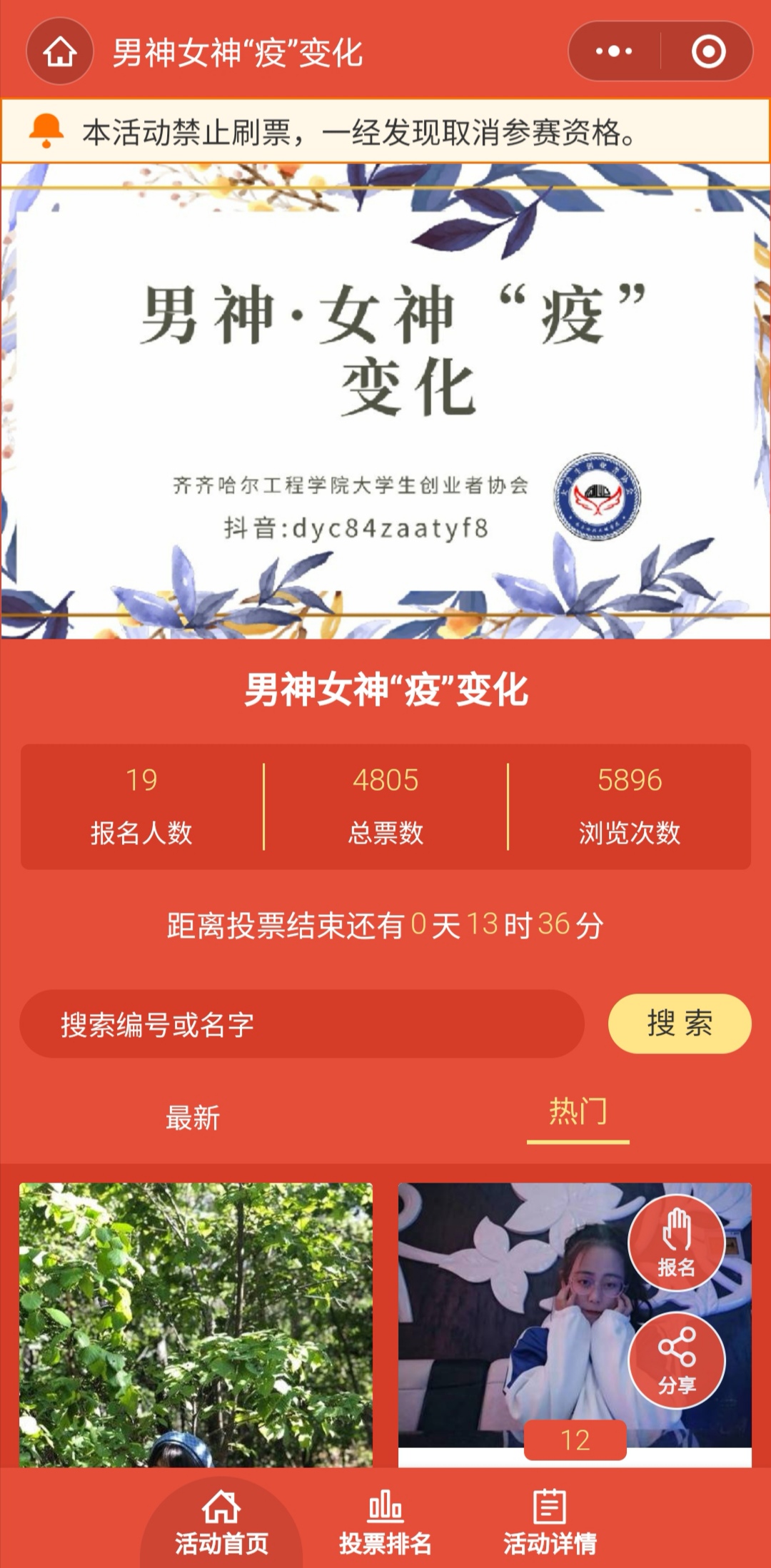 疫情不掩芳华,大学生创业者协会以别样的方式,为男神女神们送出不变的关爱。6月1日至6月4日,开展了男神女神“疫”变化主题活动,本次活动由学生发展中心主办,大学生创业者协会承办。