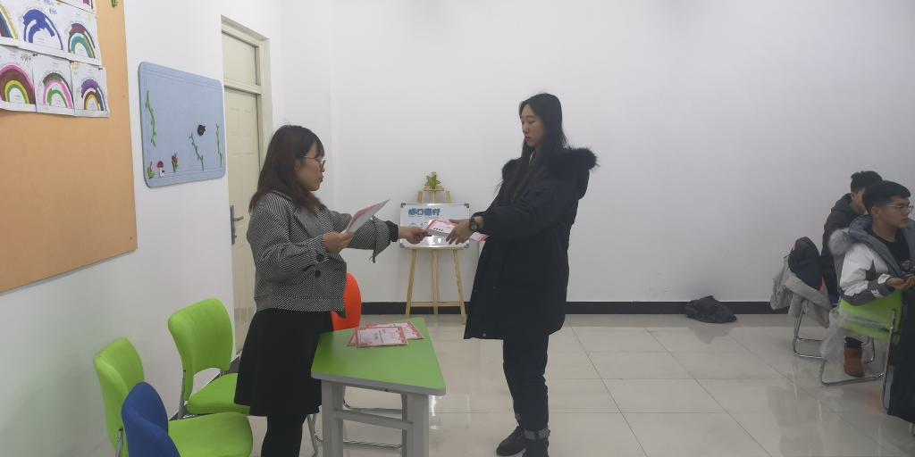 在会议最后,由指导教师毛语桐老师进行总结,她以“缓步前行,稳中有序”八字概括了本学期协会的整体特点,提炼总结协会不足之处。并希望大家能够在下学期工作中总结不足,稳步前行。会议的最后一个环节为颁奖环节,首先给会长及部长颁发聘书,其次授予迟新龙同学为最具领导风范奖,董昊伟、李想同学最具组织风范奖,侯强最佳卓越贡献奖,李浩然、杜佳丽、代梦琳等人授予年度标兵荣誉称号。相信通过本次例会使各部长吸取以往经验和教训,将用敢于担当,敢于奉献,平易近人,勇于创新的态度对待下学期的工作。