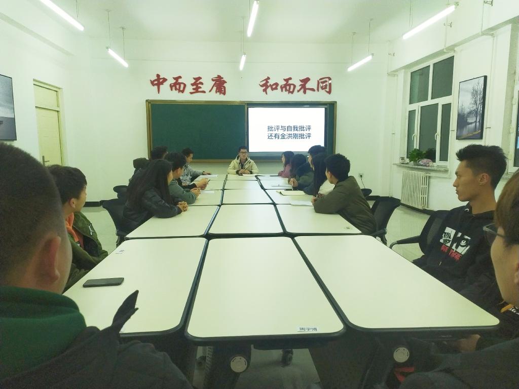 此次例会由会长薛茗、会长金洪刚主持召开,全体协会干部参加。会议开始前,由宣传部组织安排入座,纪检部负责组织签到。会议开始首先,由会长薛茗回顾往昔,向协会干部们介绍前几任会长干部,使协会干部们对协会更加深入了解。之后,对近期课程部部长邵婧妍带病工作、办公室主任丛龚旭每次临时工作积极参加、纪检部主任庞铠悦利用私人时间主动查课,一周查课时间高达5次等工作给予肯定并提出表扬。接着,由会长金洪刚对文艺部、竞赛部、组织部、秘书处近期工作的不足之处进行批评并提出改进措施。说明秘书长王宁、组织部主任朱佳乐在工作上有待提升并提出各部门干部反馈问题要逐级反馈等要求。最后,各部门干部总结交流。