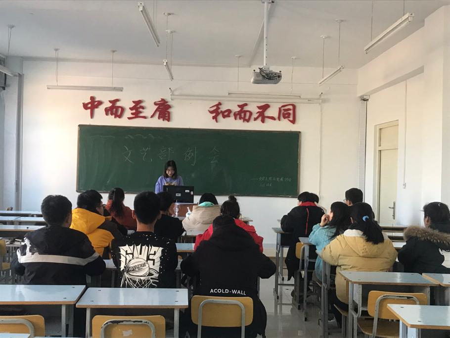 2019年11月8日,大学生职业发展协会文艺部在2教2308教室开展了第一次例会,此次会议由韩金宏部长主讲,文艺部部员全部出席。
