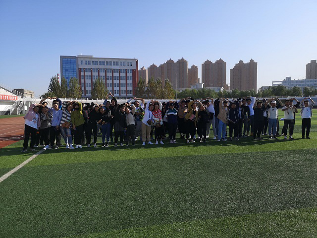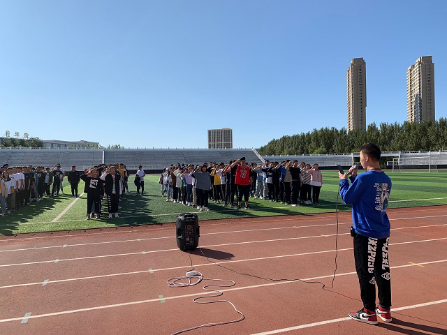 2019年9月23日下午学生发展中心主办,大学生职业发展协会承办新生拓展训练在体育场开展,学生发展中心毛语桐老师带领大学生职业发展协会干部对19交通工程系新生开展《凝聚你我,共创未来》拓展训练。